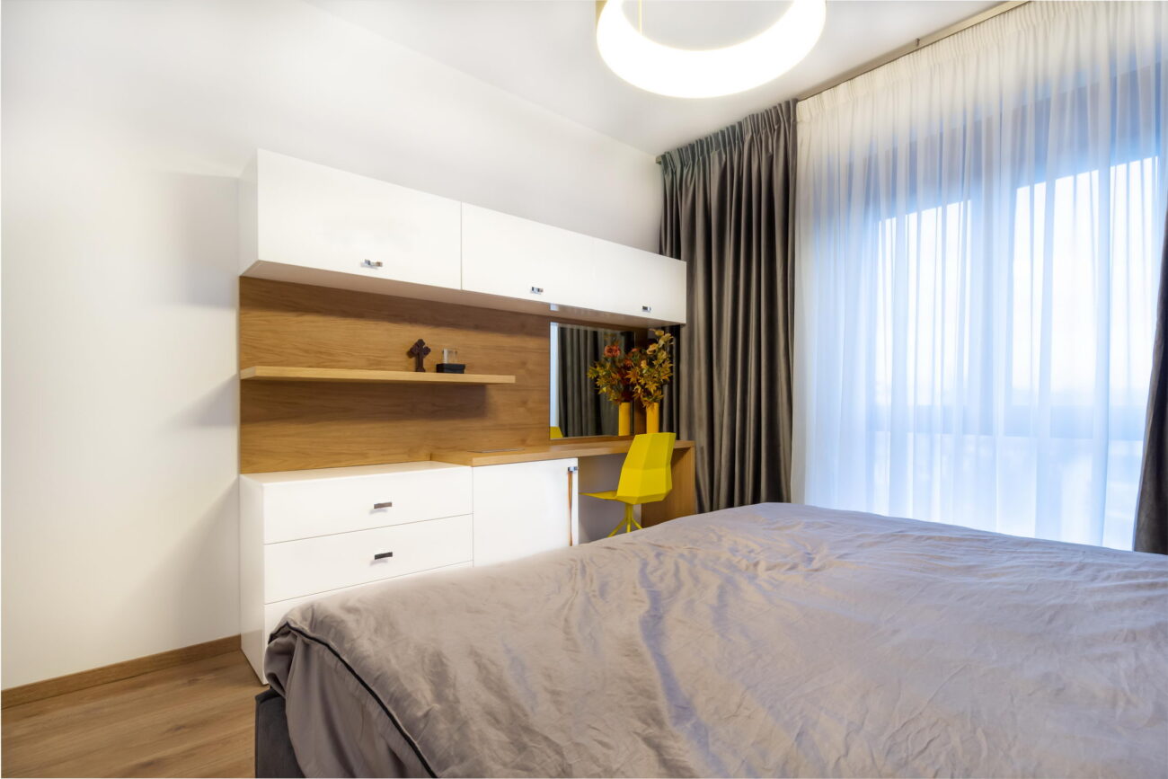 Dormitoare – paturi, dressinguri și elemente de depozitare care îmbină utilul cu esteticul.